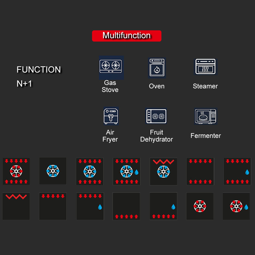 2. Monimuotoinen keittotila: Voi tukea useita keittomuotoja, kuten leipominen, grillaus, kuuma ilman konvektio jne., Jotta eri aineosien keittotarpeet vastaisivat.