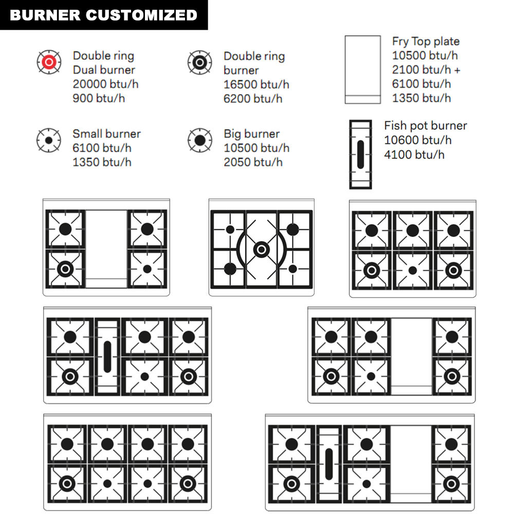 Keittiön laite digitaalista ajastimen ohjausuunin ulkonäkö Bolder Gas Rang DTOve on kaasuuuni, joka yhdistää digitaalisen ajastimen ohjaustoiminnon. Se integroi uunin ja kaasuliesi kaksoistoiminnot. Se on tyylikäs ulkonäkö ja se on helppo käyttää. Se käyttää ruostumatonta terästä päämateriaalina ja on korroosiokestävä ja helppo käyttää. Puhtaat ominaisuudet. Sillä on tyylikäs ja tyylikäs ulkonäkö ja virtaviivainen muotoilu, mikä on helppo integroida moderniin keittiöympäristöön. Samanaikaisesti ohjauspaneeli on kohtuudella asetettu ja helppo käyttää. Sopii päivittäiseen kotitalousruoanlaittoon ja erilaisten ruoanlaittotarpeiden tyydyttämiseen, kuten leipomiseen, grillaamiseen, sekoituspaistamiseen jne. Sen monipuolisuuden ja tehokkuuden vuoksi se sopii myös kaupallisiin tapahtumapaikkoihin, kuten pieniin ravintoloihin ja kahviloihin ruoanlaittotehokkuuden ja laadun parantamiseksi. Se käyttää palamistekniikkaa ja lämpötehokkuuden suunnittelua energian tehokkaan käytön varmistamiseksi ja jätteiden vähentämiseksi.